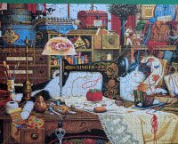 This weather! Ugh! Thankfully puzzles make it better! I always enjoy Charles Wysocki as the pieces are a tad smaller (making the 1000 piece more manageable) and some pieces will fit in the wrong spot to add another level of challenge. However they are never too difficult where I wouldn't bother. Here is my latest puzzling. To warmer days...